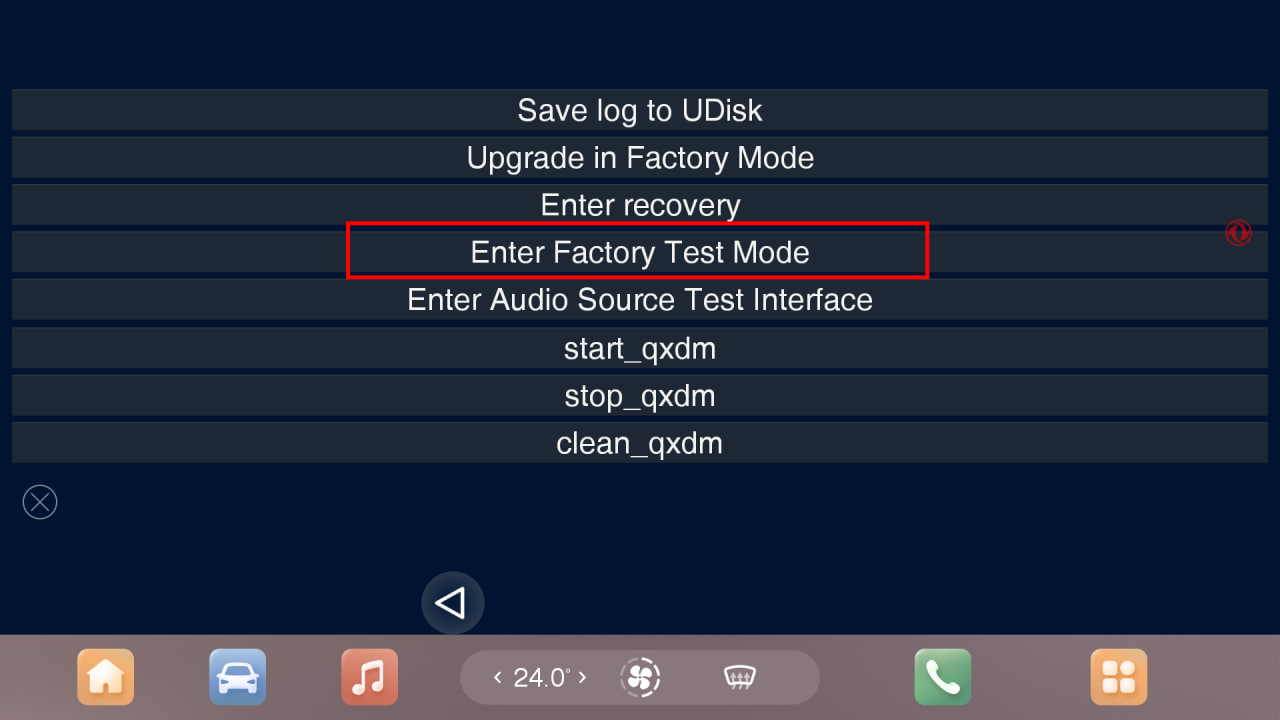 4. Нажмите на пункт “Enter Factory Test Mode”