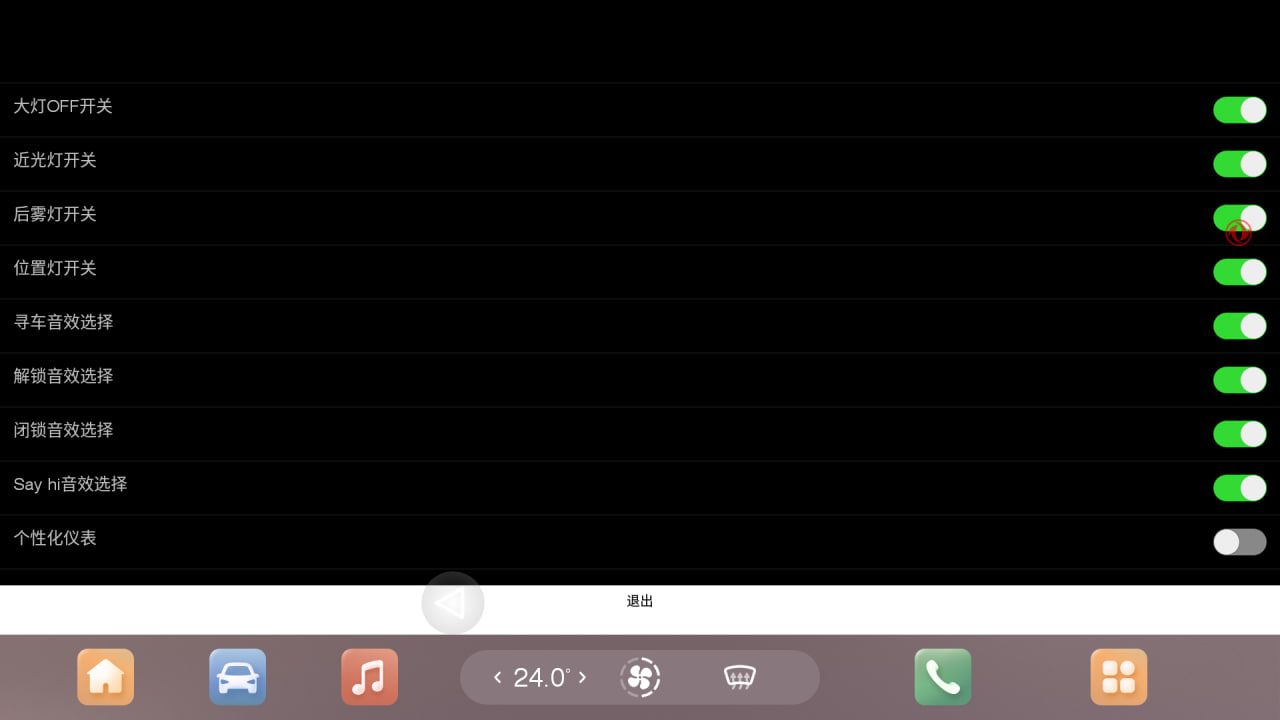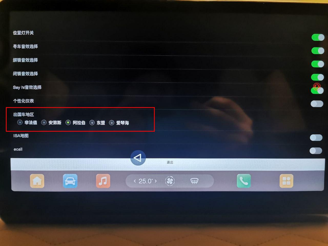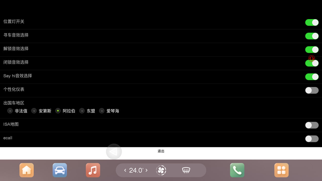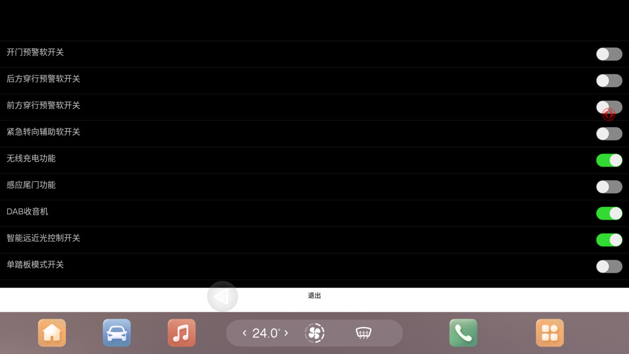 После включения или выключения опции (либо ряда опций) необходимо нажать на иероглиф подтверждения в сером поле внизу экрана инженерного меню, после чего перезагрузить ГУ долгим удержанием кнопки Mode на руле.